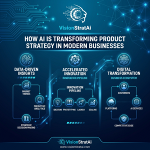 AI is transforming product strategy in modern businesses by enabling smarter decisions, faster innovation, and deeper customer understanding. Companies that combine AI technology with proper training and strategic alignment are better positioned to lead in an increasingly competitive landscape.