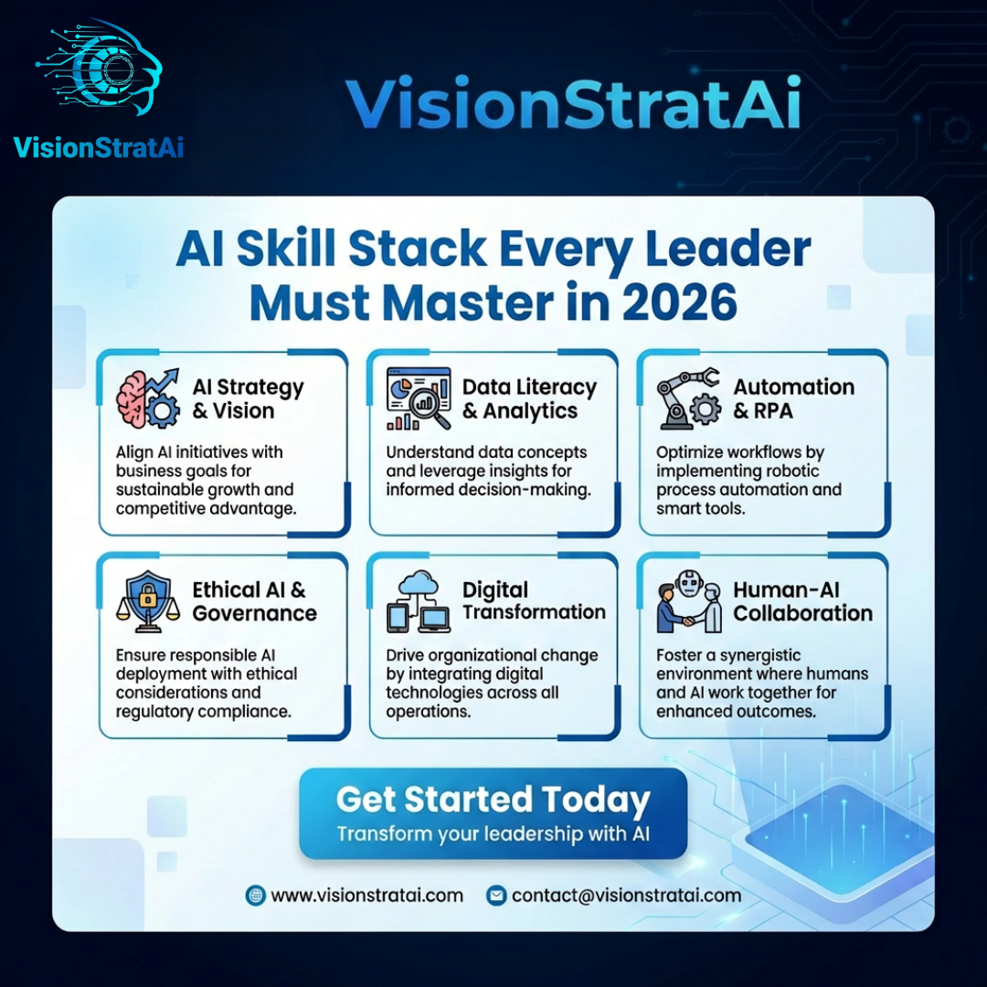 AI Skill Stack Every Leader Must Master in 2026 Introduction As technology evolves rapidly, artificial intelligence (AI) is transforming the way businesses operate, innovate, and compete. By 2026, the competitive edge will belong not just to companies that adopt AI tools, but to leaders who understand how to integrate…