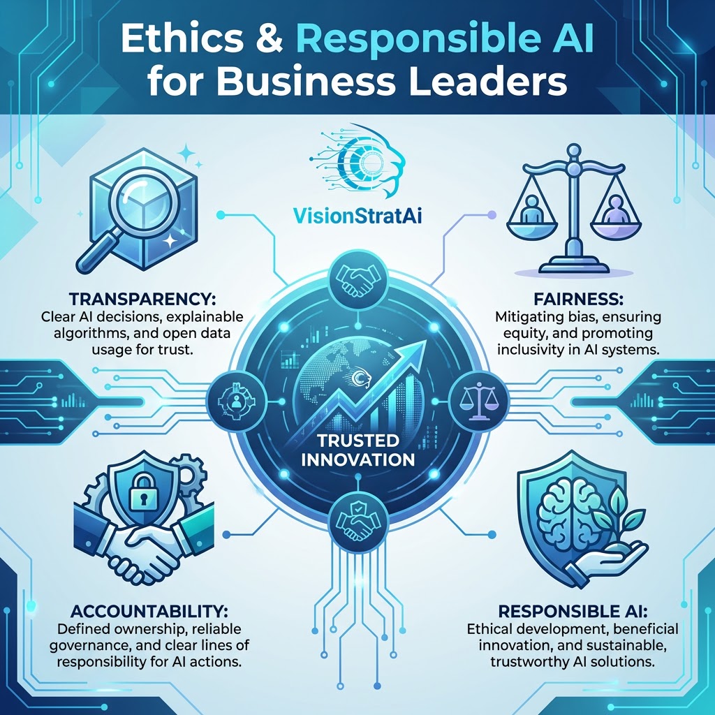 Ethics & Responsible AI for Business Leaders Introduction Artificial Intelligence (AI) is transforming industries, redefining decision-making, and accelerating innovation. However, as AI adoption increases, so do concerns around bias, transparency, privacy, and accountability. For business leaders, ethics and responsible AI are no longer optional considerations — they are strategic imperatives.…