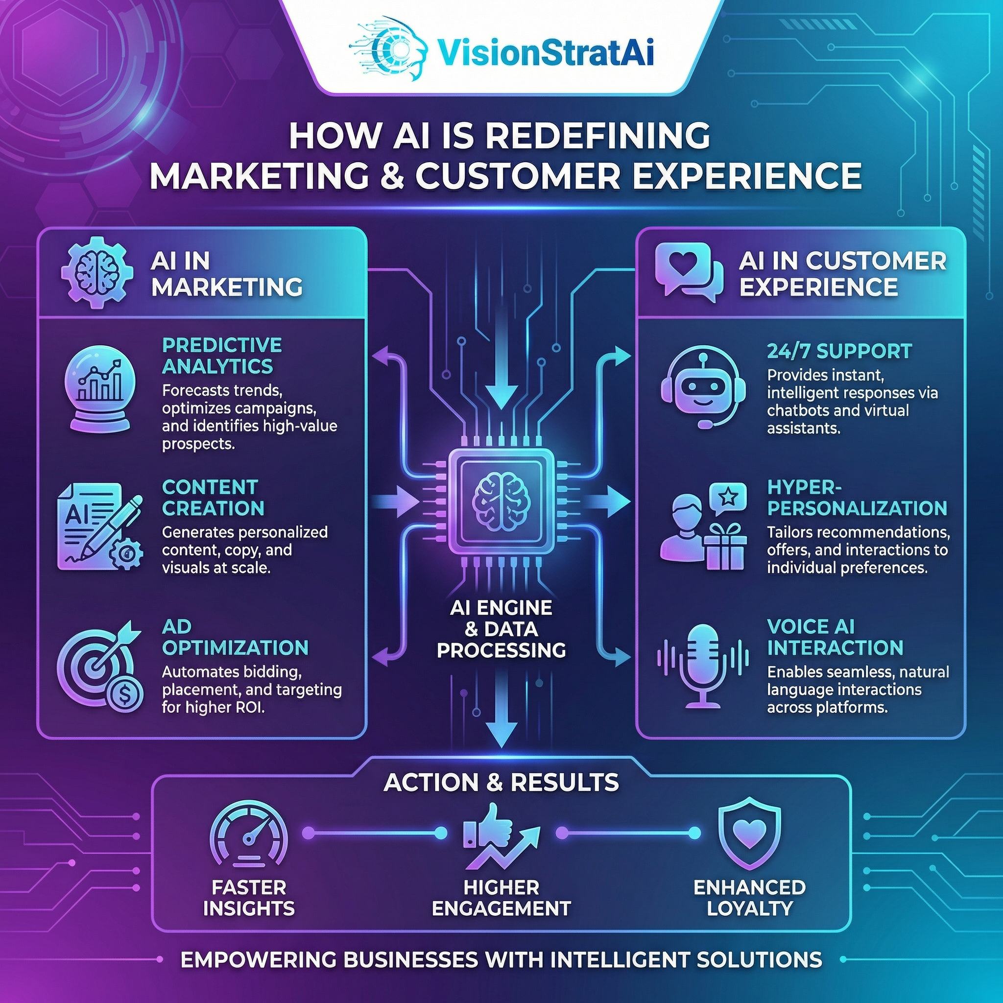 How AI Is Redefining Marketing & Customer Experience Introduction Artificial Intelligence is transforming marketing and customer experience (CX) at an unprecedented pace. In today’s competitive digital environment, brands must deliver personalized, real-time, and data-driven experiences to meet rising customer expectations. AI enables marketers to move beyond traditional campaigns toward predictive,…