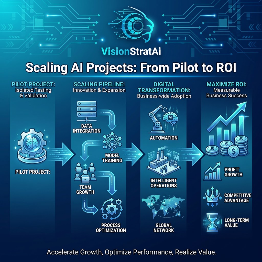 Scaling AI Projects: From Pilot to ROI Introduction Many organizations successfully launch AI pilot projects. However, only a small percentage manage to scale those initiatives into enterprise-wide impact and measurable return on investment (ROI). Moving from experimentation to transformation is where most AI projects fail. Scaling AI projects requires more…