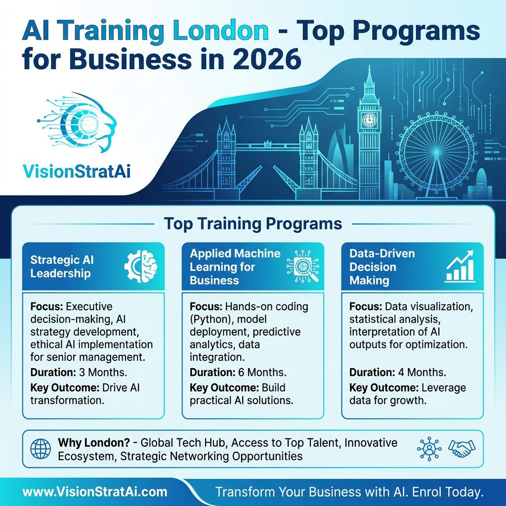 AI Training London – Top Programs for Business in 2026 Artificial Intelligence is no longer a futuristic concept — it’s a core driver of growth, efficiency, and innovation for modern businesses. In 2026, companies in London are accelerating AI adoption across marketing, finance, HR, operations, and product development. To stay…
